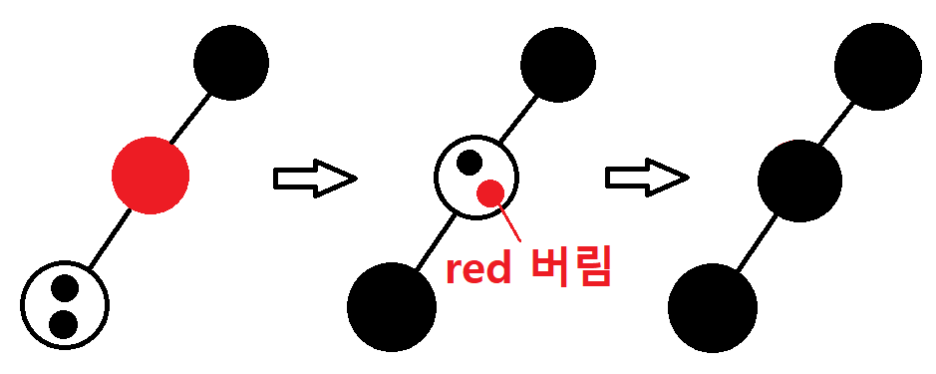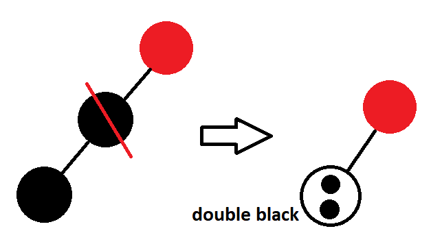 위의 그림을 보면 검정 노드가 하나 삭제되어 black height가 문제되는데, 이를 막고자 한노드에 2개의 black 노드를 삽입했다고 우선 생각하자.