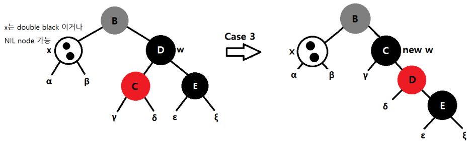 case 3 : w는 Black, w의 왼쪽자식이 red