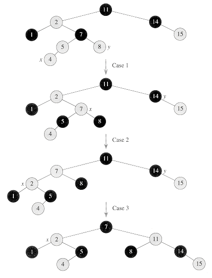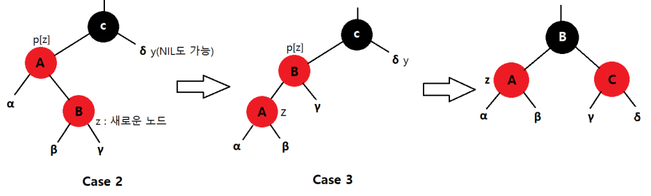 참고로 case1,2,3 은 모두 p[z](아버지)가 p[p[z]](할아버지) 의 왼쪽 자식인 경우들 이다.