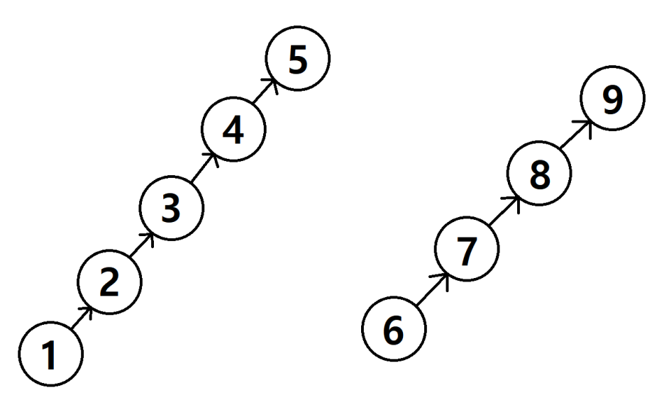 5번과 9번 자기 자신을 root로 하는 tree가 2개 생겼다.