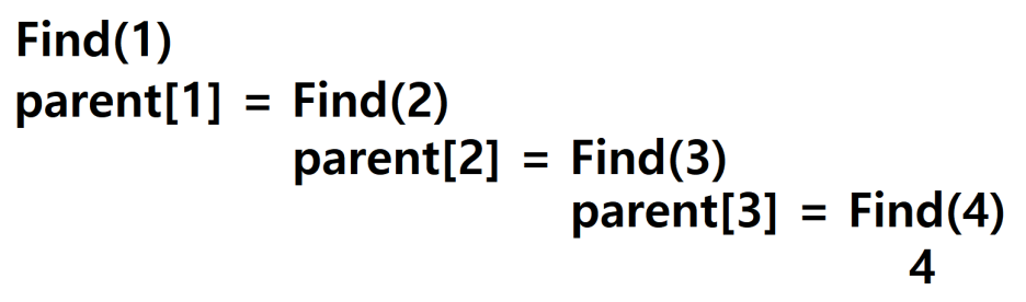 Find 함수를 계속 호출하다보면 Find(4)를 호출하게 되고, 4는 자신이 root 이니 4를 반환할 것 이다.