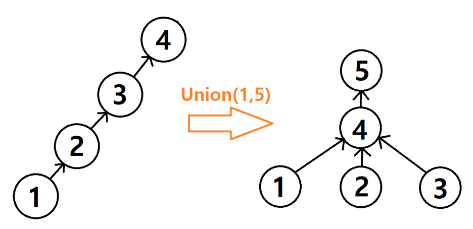 이제 Union(1, 5)에서 Find(1)과 Find(5)를 완성하였다.