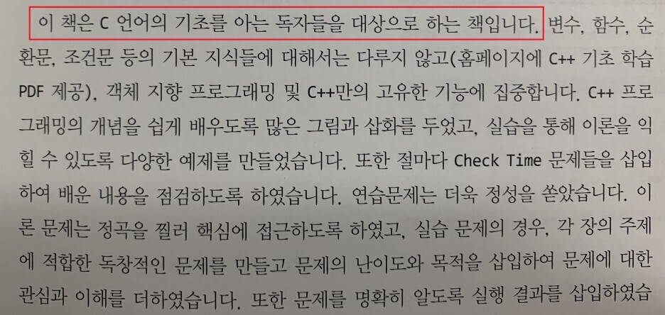 => 최소한 C언어 문법은 기초정도는 알고있으셔야 합니다. 저자또한 C언어의 기초를 아는 독자를 대상으로 하는 책임을 도입부에서 명시해 주었다.