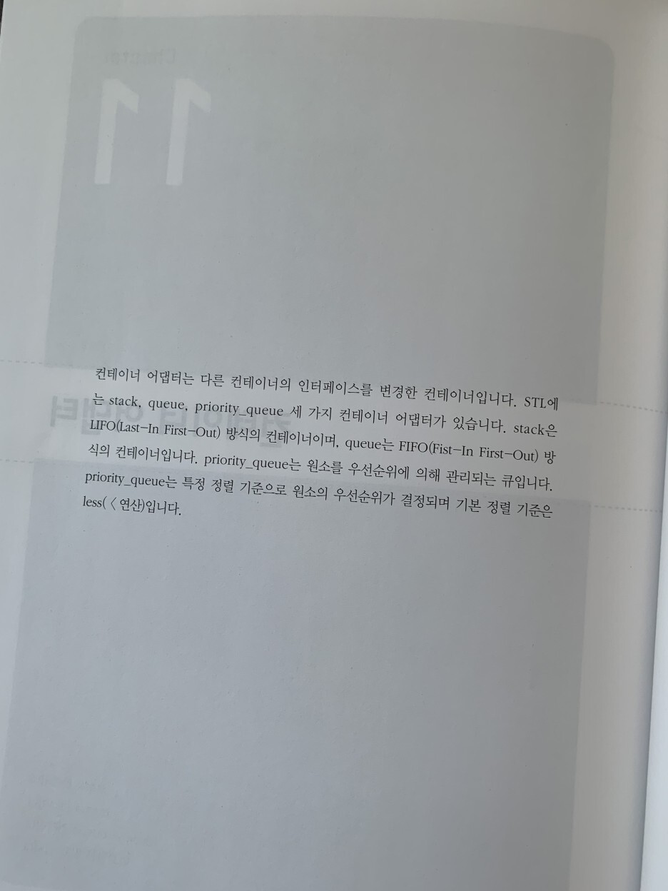 가끔 아주 가끔 이해안가는 부분이 있는데 코드에 대한 설명이 조금은 부족한 느낌이 들었습니다. 예를 들어 STL 함수 객체 단원에서 끝부분에 나오는 멤버함수 포인터 어댑터를 사용자가 직접 정의하는 부분에서 template를 활용한 설명부분이 있느데 이 부분이 코드를 보면 뭘 하겠다는 의미는 느껴지는데, 명확히 이해되지는 않았습니다. 이는 추후 9장을 한번더 읽어보면서 다시 이해해볼 생각입니다.