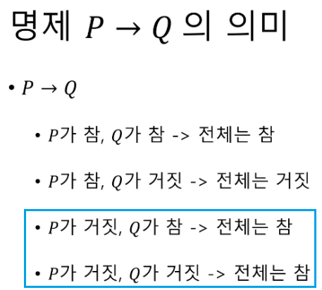 ● P가 거짓이고, Q가 참이면 -> 전체는 참이된다 ???