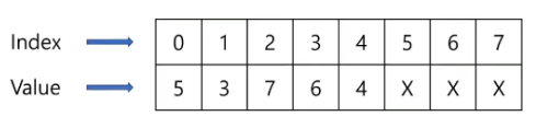 이를 위해서 array에 몇개의 원소가 저장되어있는지를 표시하는 count 변수가 따로 필요한 것 이다.