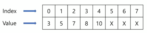 ▶ 위의 배열은 값이 있는 원소들이 왼쪽에 한쪽으로 몰려서 Packed 되어있으며, sorting까지 되어있는 상태이다.