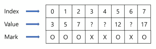 위의 배열을 보면 value가 없는 곳들에 ?로 되어있다. 이 상황에서 Binary Search가 가능할까? sorting 되이있지 않은가?