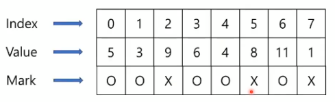 ▶ 원소(아이템)별로 사용중인지를 따로 표시해줘야 한다. 예를 들어 bit map 이 있다.