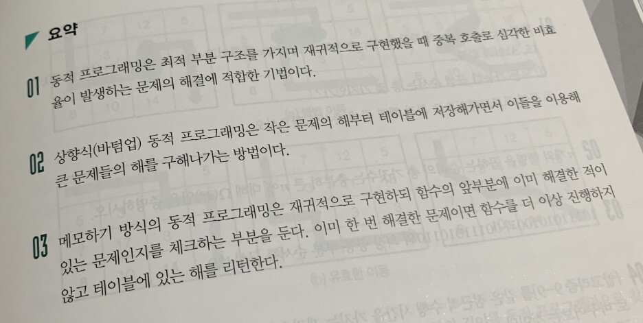 예를 들어 9장 DP 에서는 DP라는 개념이 왜 나오게 된 것 인지? 기존의 재귀호출 방식에는 어떠한 문제가 있었는지?