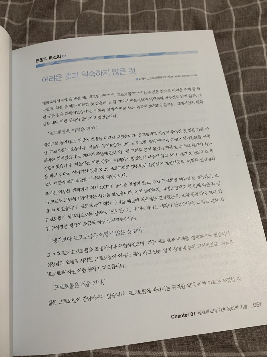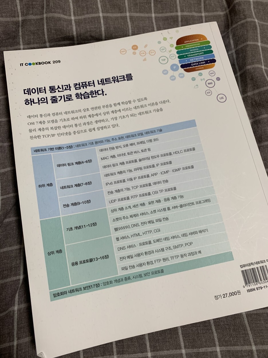 처음에는 몰랐는데 책을 읽어가면서 표지가 표현하고있는것이 무엇인지 알게되었다. 표지에 있는 햄버거 모양은 OSI 7계층을 나타낸 그림이였다.