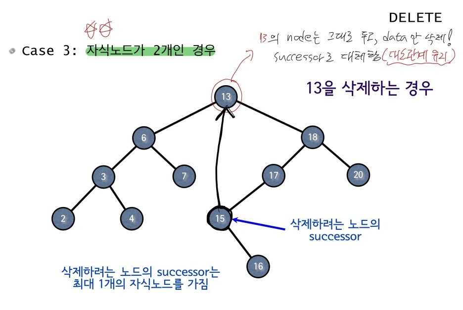 - case 3 : child가 양쪽 모두 있는경우