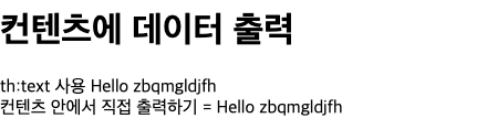 HTML의 콘텐츠(content)에 데이터를 출력할 때는 다음과 같이 th:text 를 사용하면 된다.