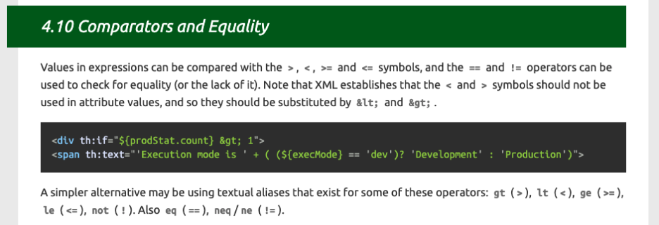 <li>1 == 10 = <span th:text="1 == 10"></span></li>