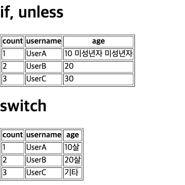 <span th:text="'미성년자'" th:unless="${user.age ge 20}"></span>