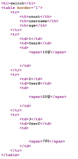 타임리프는 해당 조건이 맞지 않는경우 태그 자체를 렌더링하지 않는다. 그냥 태그 자체가 없어진다. 다음 코드를 살펴보자.