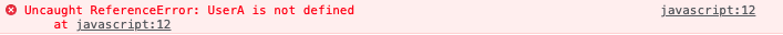 이는 var username = UserA; 부분에서 오류가 있기 때문입니다. 문법이 오류이기 때문이죠!