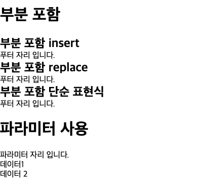 <div th:replace="~{template/fragment/footer :: copyParam ('데이터1', '데이터2')}"></div>