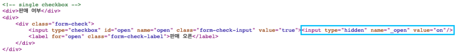 <input type="hidden" name="_open" value="on"/> // 히든 필드