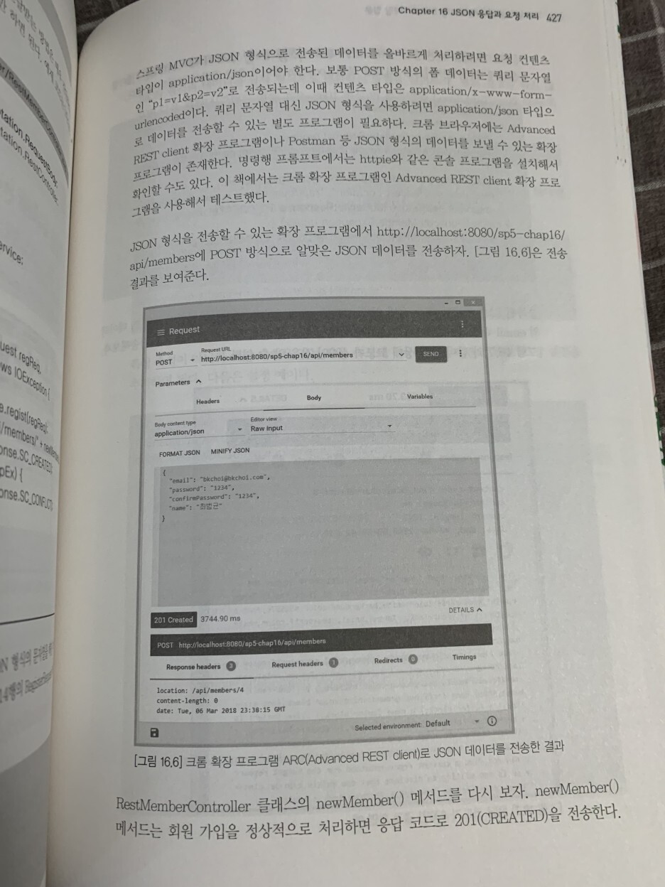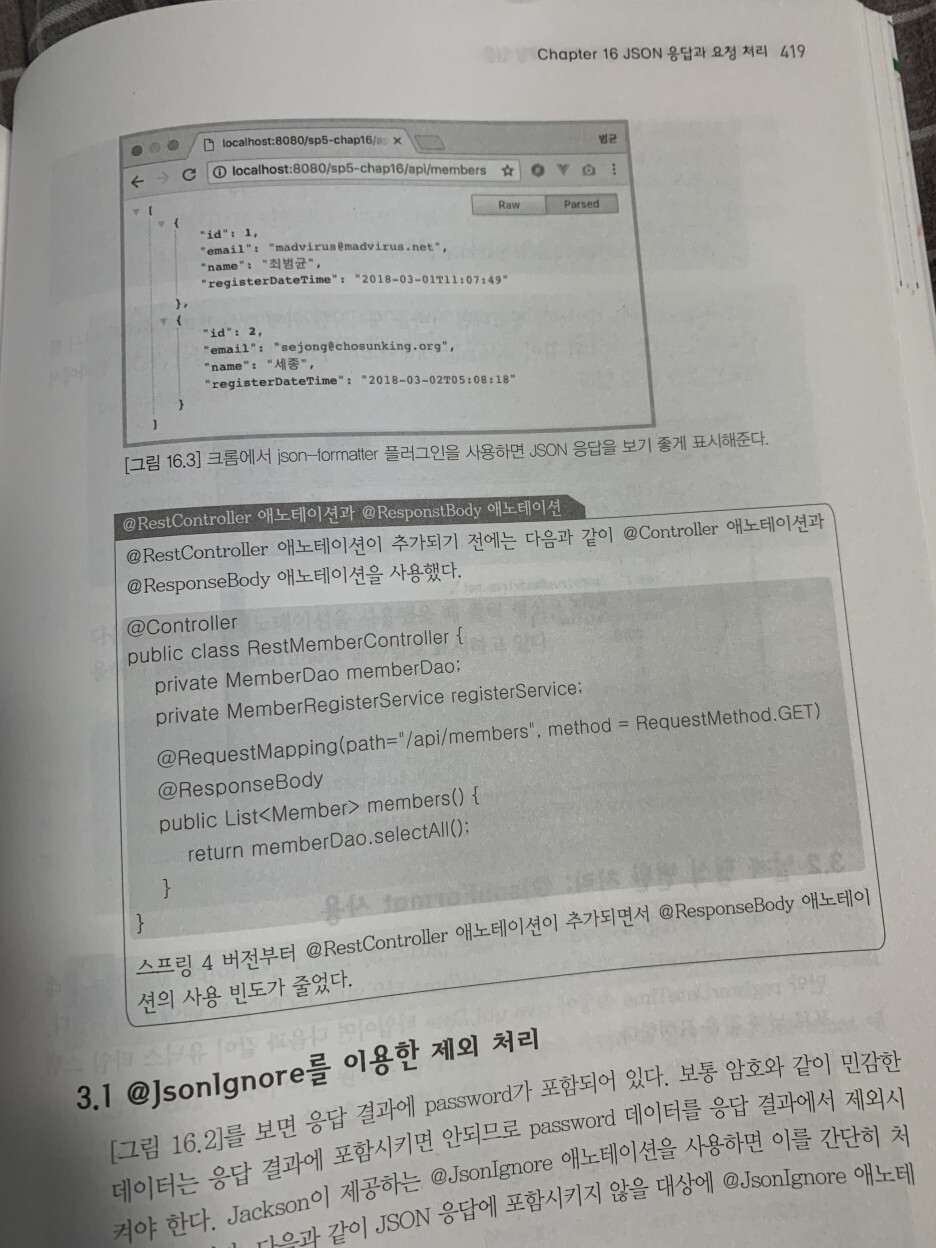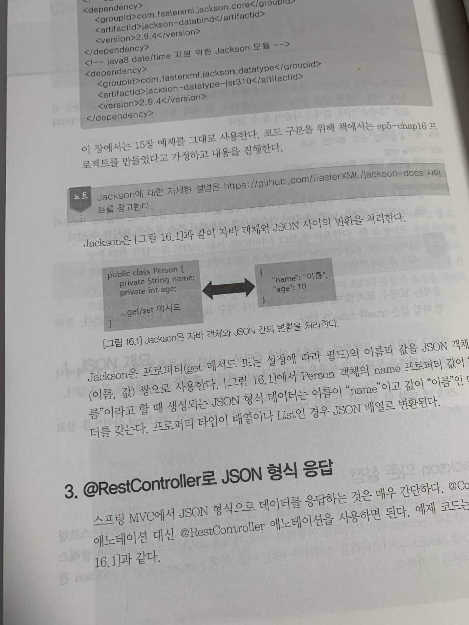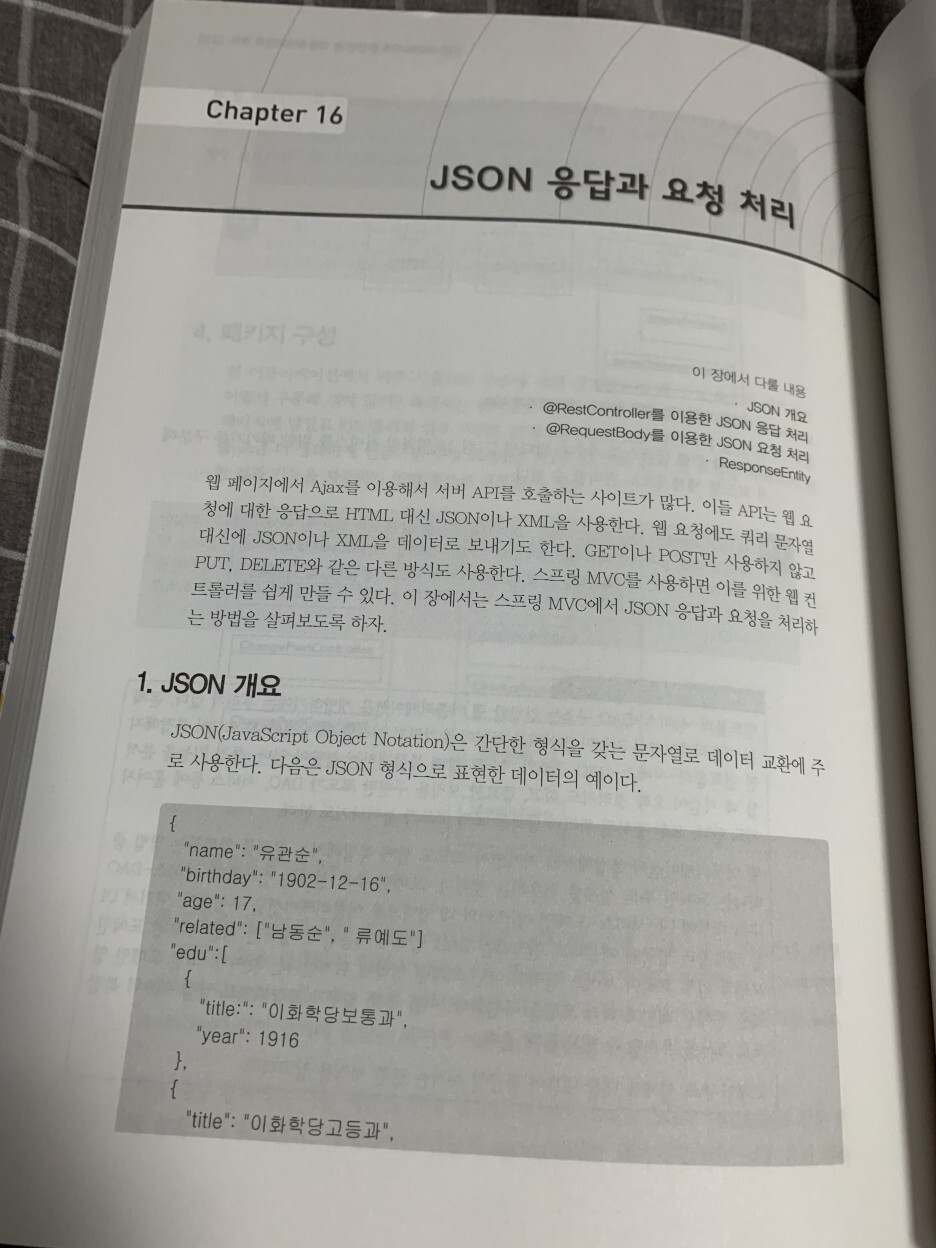 리뷰를 인상 깊게 공부했었던 16장 JSON 응답을 기준으로 작성하겠다.