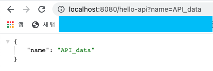 helloApi의 메서드를 보면 메소드 몸체에서 hello 객체를 하나 생성한 후, 이름은 query문에서 가져온 name으로 저장한 후, 객체를 반환한다.
