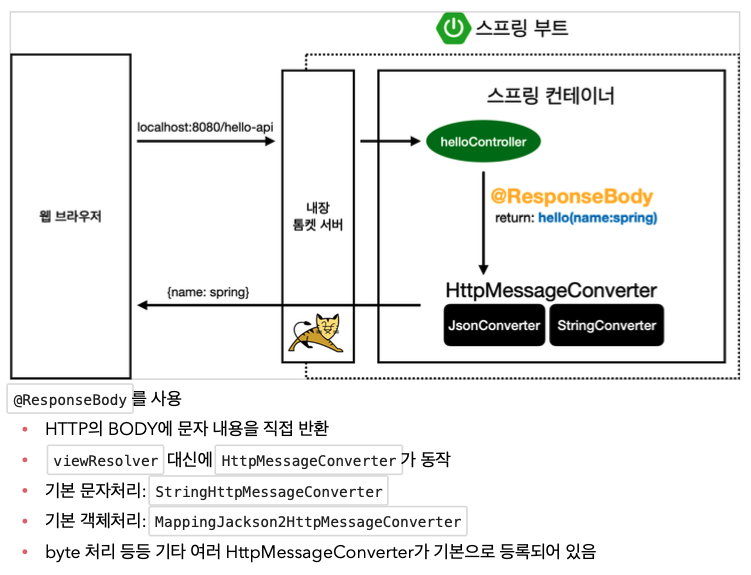 Controller에서 @ResponseBody가 있으면 viewResolver가 아닌 HttpMessageConverter에게 데이터를 전달한다.
