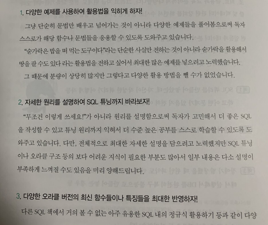 차라리 관련된 부분의 설명을 전부 PL/SQL 뒤로 넘겨서 "깊게 공부하기" 와 같은 단원이 있었으면 좋을 것 같다.