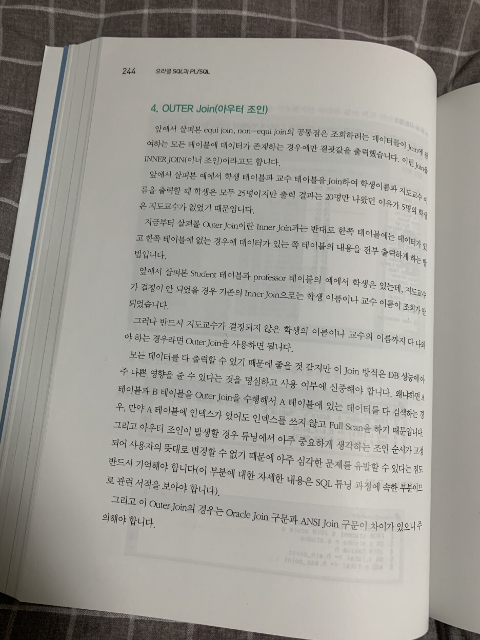 위 내용은 재미있게 읽었던 OUTER JOIN 부분이다.