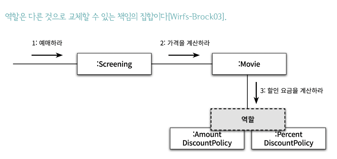 객체가 어떤 특정한 협력 안에서 수행하는 책임의 집합을 역할이라고 부른다.