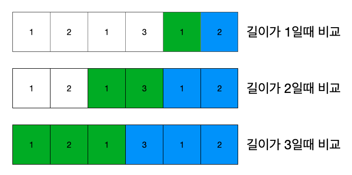 다음 그림은 이미 "좋은수열" 임이 판명된 "12131" 의 맨 뒤에 2를 추가한 case 이다.