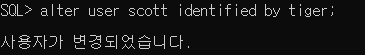 이후 show user를 입력하면 사용자가 scott임을 확인할수 있다.