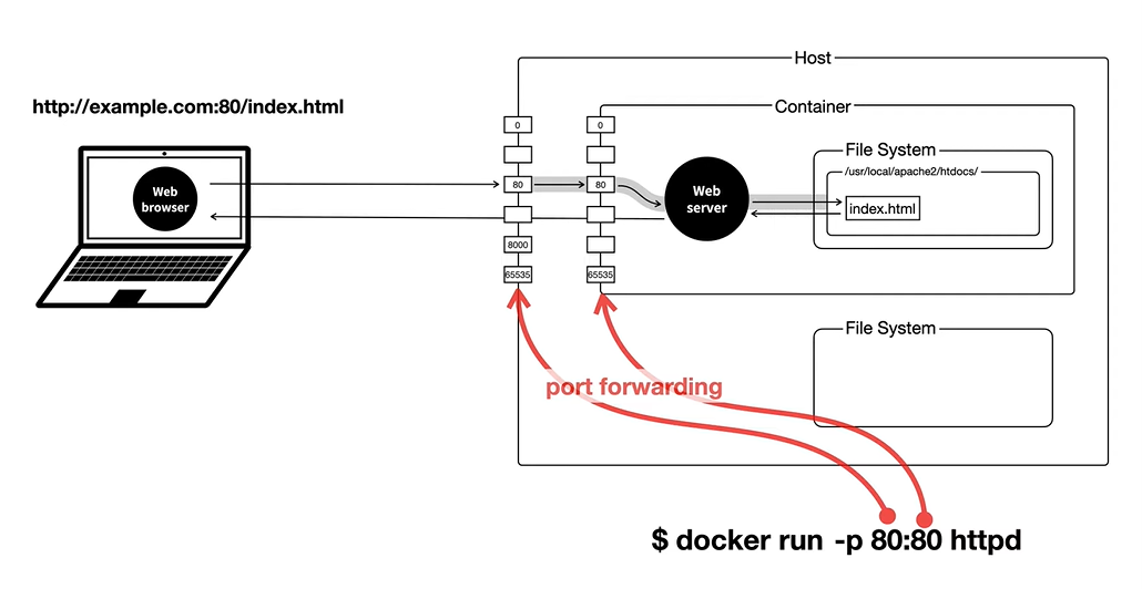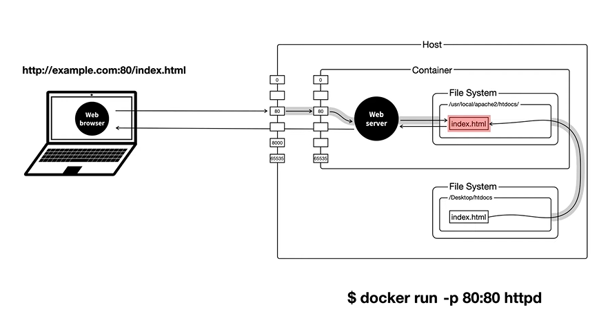 localhost의 8080포트를 Container의 80번 포트와 포트포워딩을 한 것 이다.
