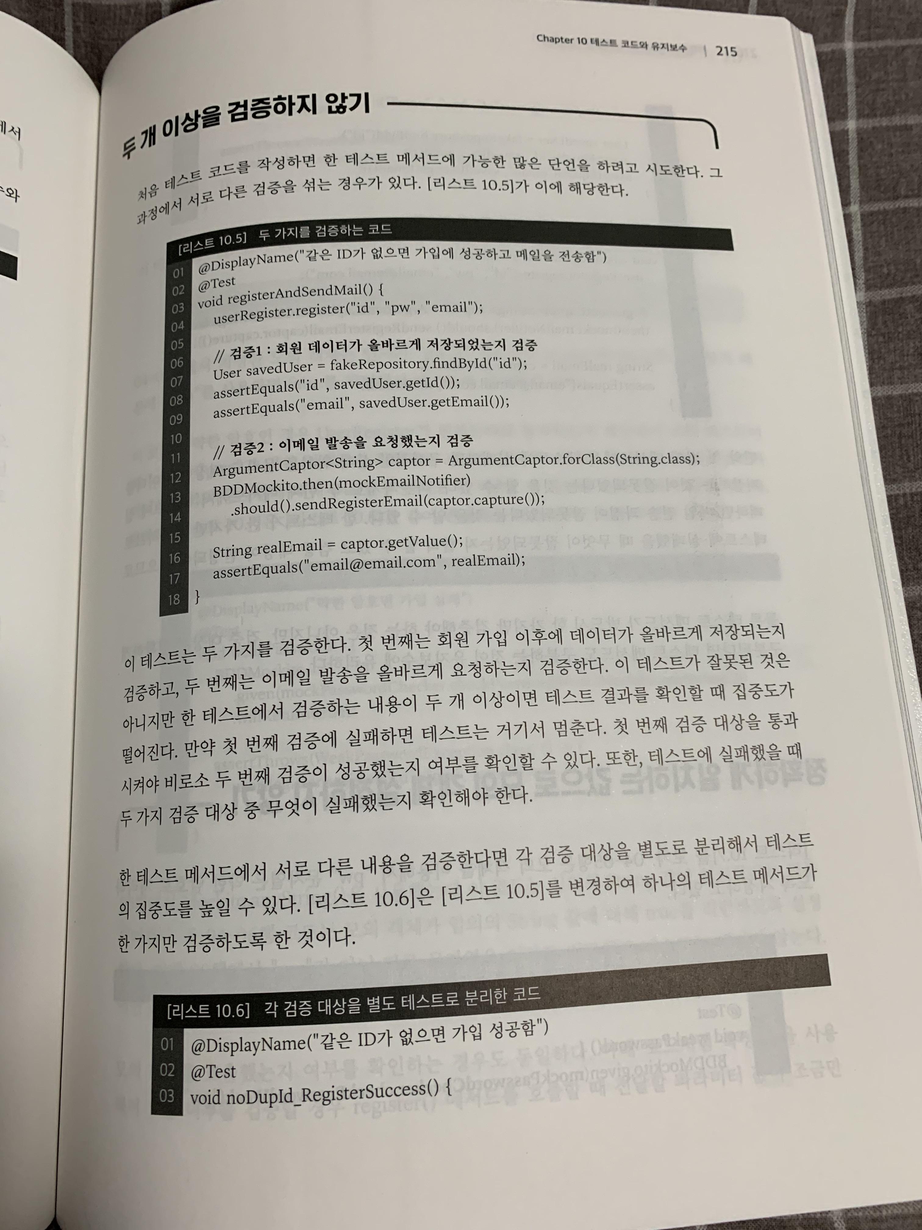 입문 책이라 이런 점을 배려하여 기초적인 Mockito의 기본 사용법 또한 적혀있었다. 이런 부분에서 저자의 세심함이 느껴진다.