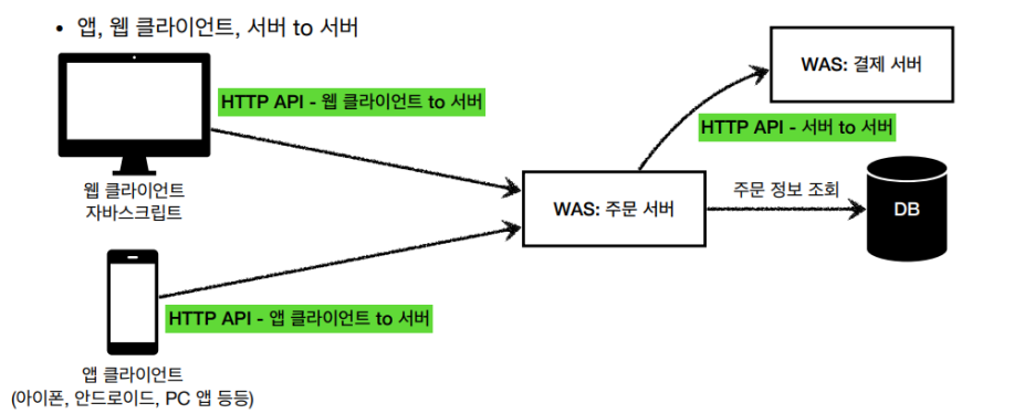 - 앱, 웹 클라이언트, 서버 <=> 서버 간 데이터 전달 (다음 그림을 살펴보자)