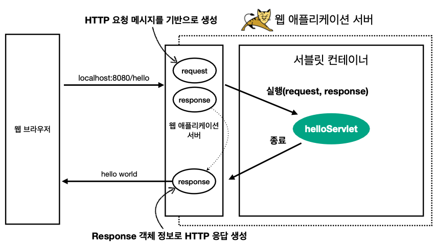 - “웹 컨테이너(Web Container)” 혹은 “서블릿 컨테이너(Servlet Container)”라고도 불린다.