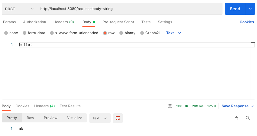 일반적으로 단순 텍스트 보단 JSON 형태로 데이터를 보내지만, 우선 TEXT를 보내는것부터 확인해 보자.