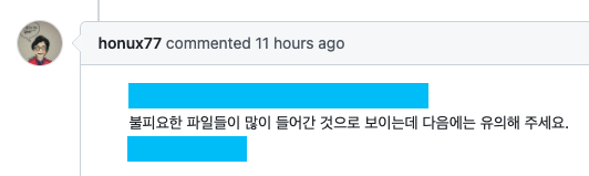 처음으로 pull request를 보내게 되었다. 호눅스 께서 불필요한 파일이 너무 많은것 같다는 리뷰를 주셨다.