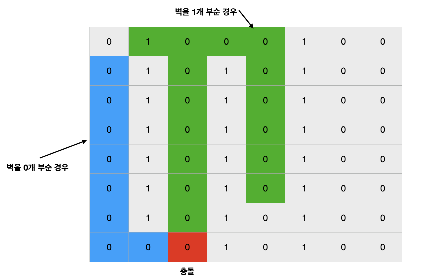 1층은 벽을 부순적 없을때만 사용하고, 2층은 벽을 부순적이 있을때만 사용하도록 하는 것 이다.