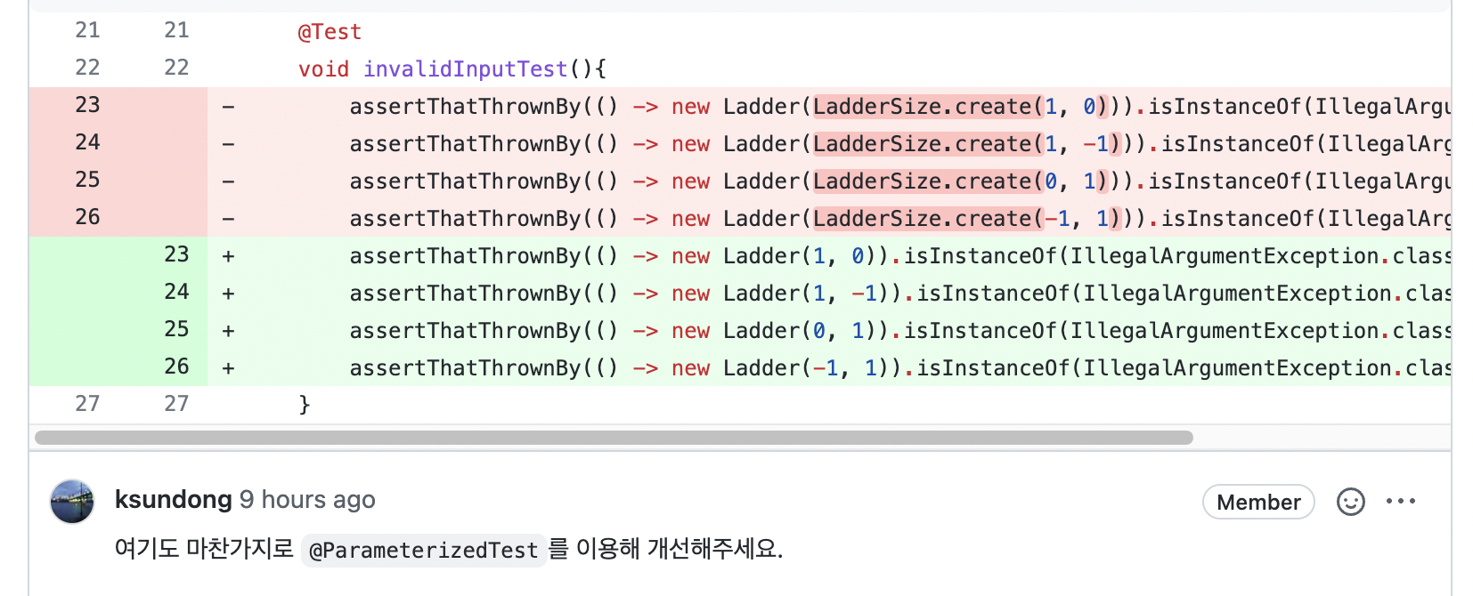 @ParameterizedTest를 사용하니 2가지 장점을 얻을 수 있었습니다.