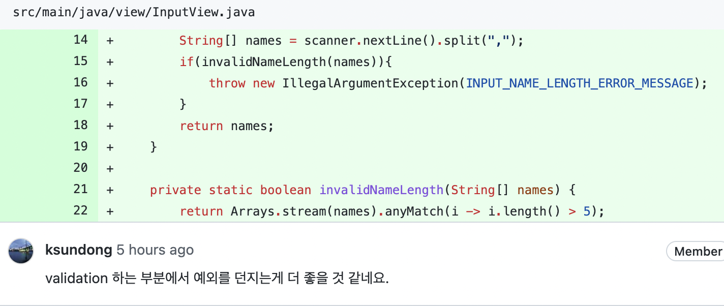 변경 후 invalidNameLength 에서 검증을 할때, 길이가 5 초과라면 예외를 던지도록 변경하였다.