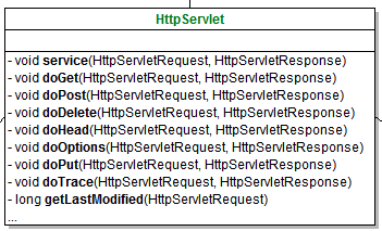 앞서 1번 형태의 service() 메서드는 바로 이 요청방식 정보를 추출한 후, 추출되는 요청방식에 따라 서로 다른 메서드를 호출하도록 구현되었습니다. 이때 호출되는 메서드는 HttpServlet 클래스에서 선언하고 있는 다음 메서드 들 입니다.