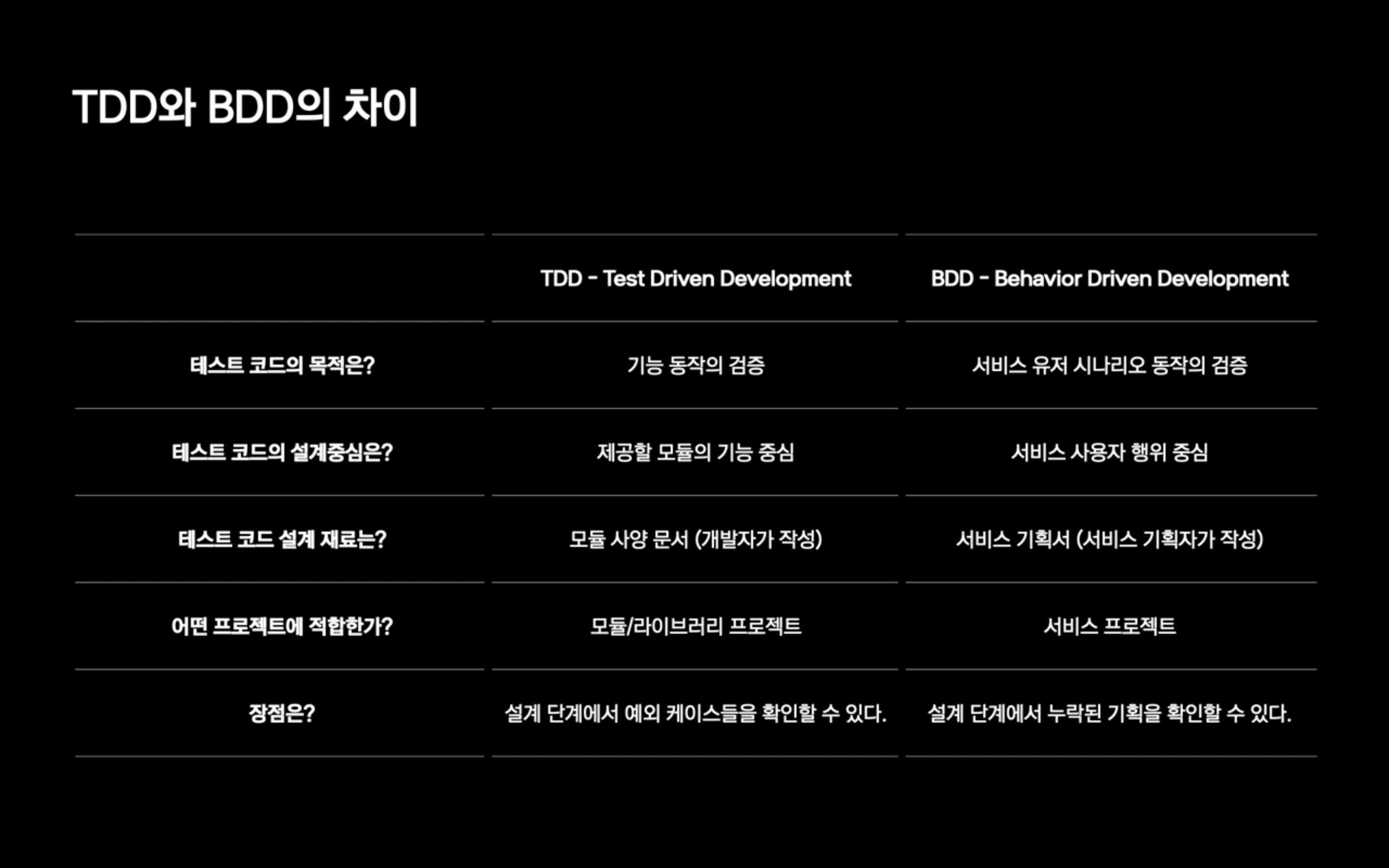 다만, 오늘부터라도 TDD를 진행하다, 어느 정도 사용자의 시나리오 과정이 필요한 시점에 BDD방식을 적용해 볼 예정이다!