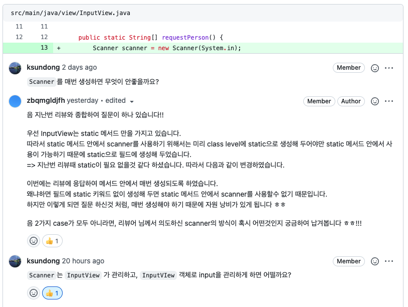 다음번에는 InputView를 객체로 만들어 사용해 봐야겠다.