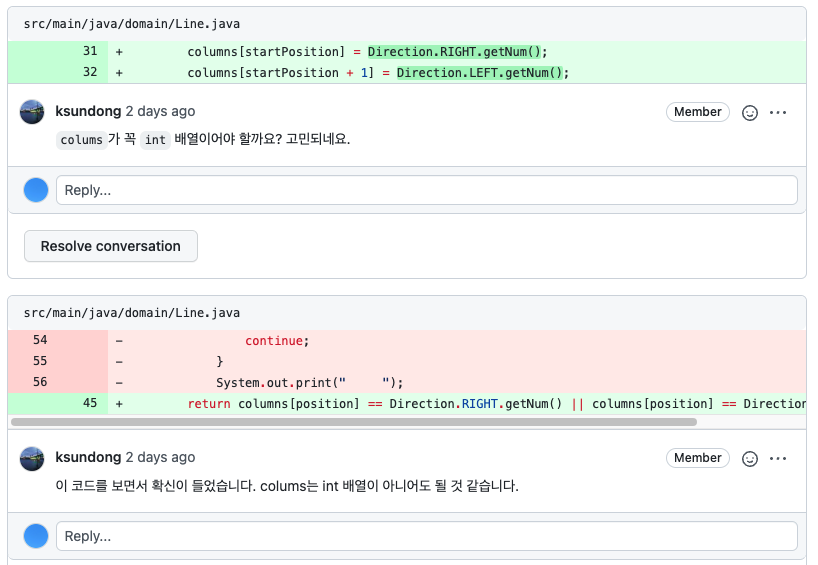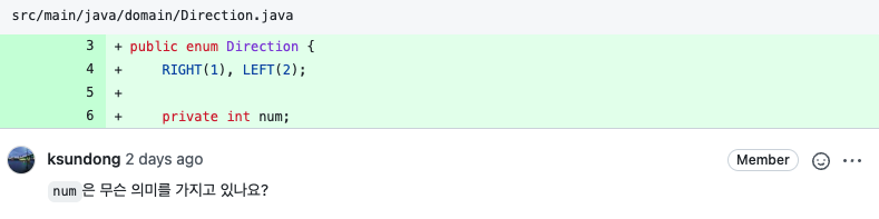 사실 num이라 만든 이유는 Direction이라는 enum에서 RIGHT, LEFT가 충분한 의미를 전달해준다 생각했기 때문이다.