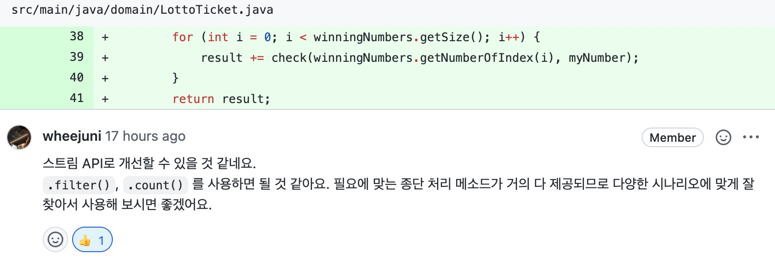우선 checkWinningNumber()를 stream으로 개선하기 전, check 부터 boolean 반환으로 변경하면 다음과 같다.