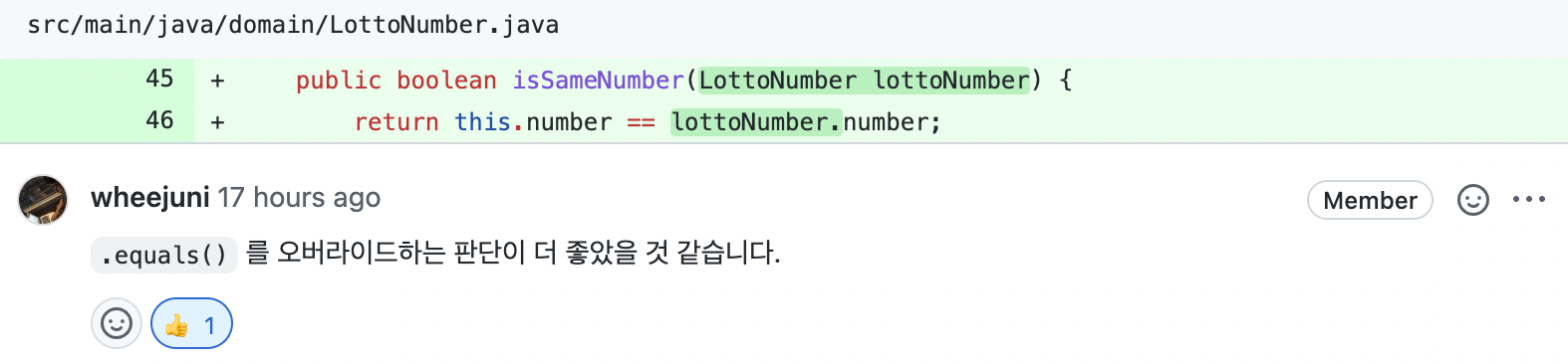 public boolean isSameNumber(LottoNumber lottoNumber) {