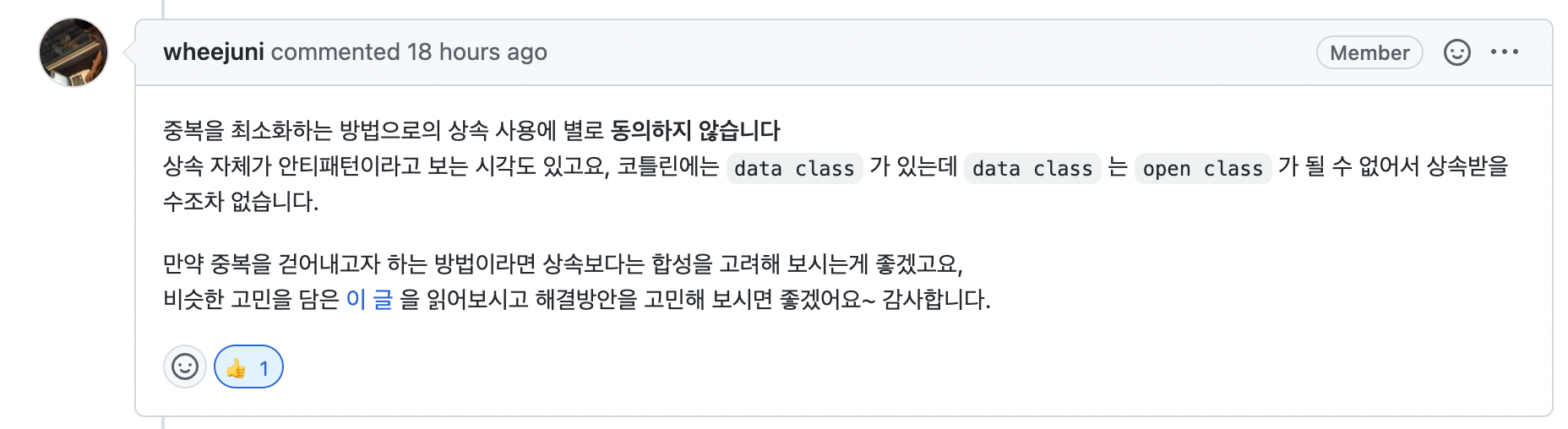 우선 난 일급 컬렉션에 상속을 사용하면 안된다는 생각은 하였지만, 좀 구체적인 근거가 없는것 같아 팀원과 함께 질문하였다.