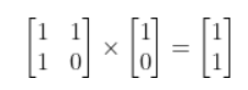 현재의 피보나치 수와 이전 피보나치 수를 각각 1행, 2행에 배치한 2X1 행렬을 생각해보자.