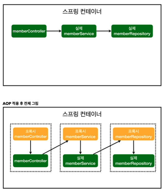 다음은 AOP적용전 과 후의 모습을 그림으로 확인할 수 있다.