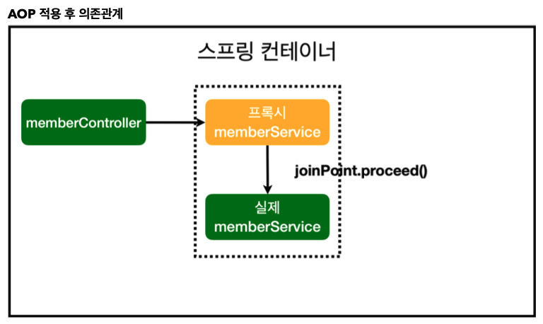 AOP 스프링 빈에 등록될때 proxy memberService를 하나 생성한다.